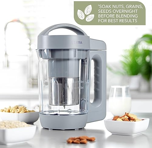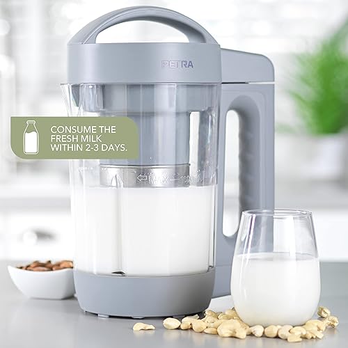 Petra Machine à Lait Végétaux 1.6L, Machine à Lait de Noix Automatique, Machine pour Lait Végétal Fait Maison sans Lactose, Avoine, Noisette, Amande, Sans BPA, Autonettoyant, Garantie 3 Ans, Gris