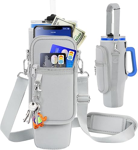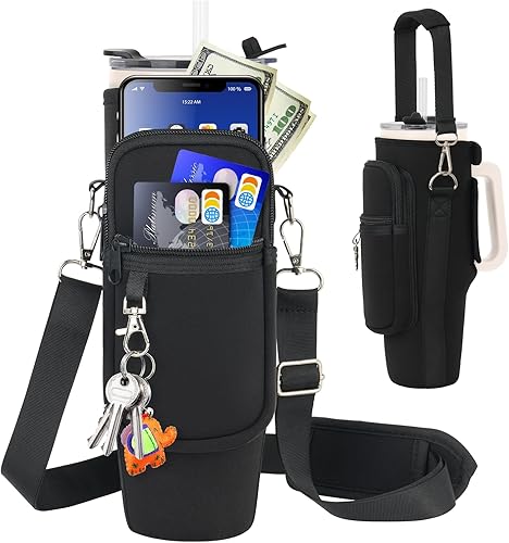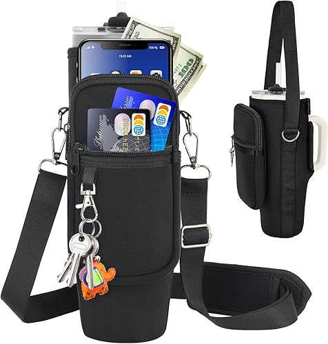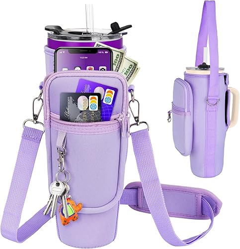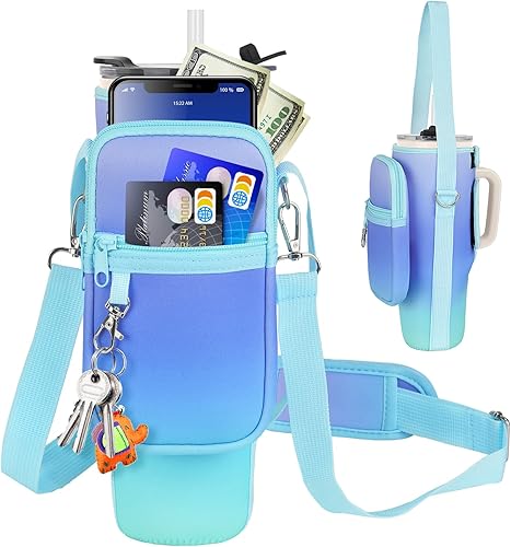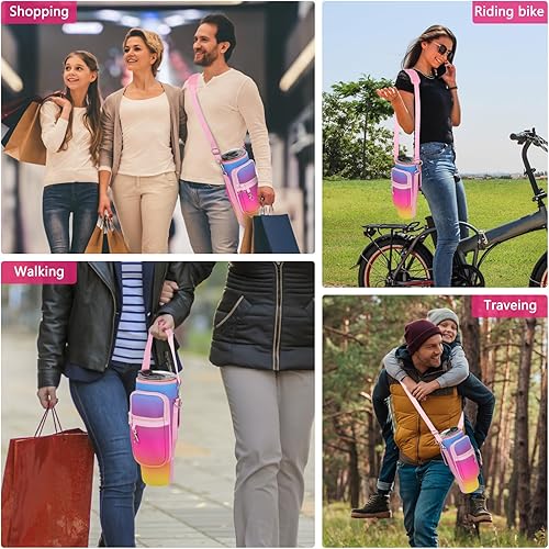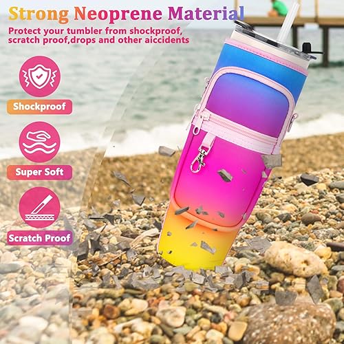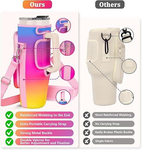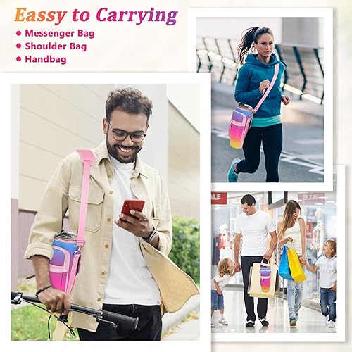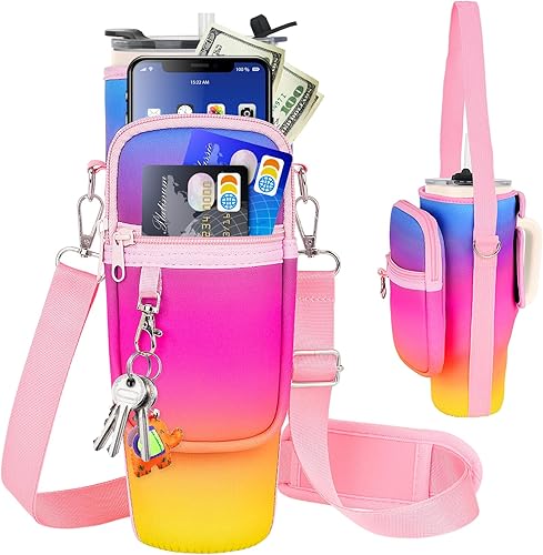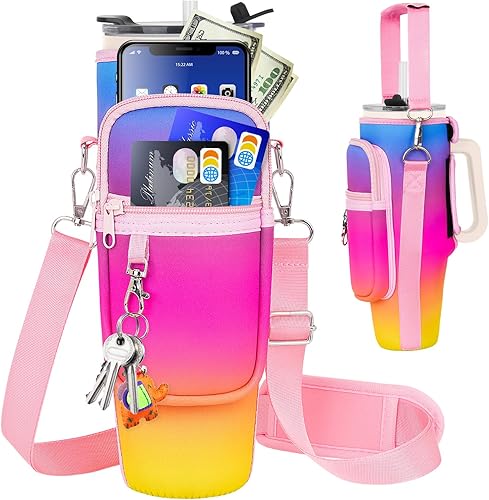 LEFOR·Z Sac de transport pour bouteille d'eau compatible avec les gobelets Stanley de 0,7/1,2 l avec poignée, porte-bouteille d'eau avec bandoulière réglable pour voyage - Arc-en-ciel