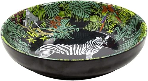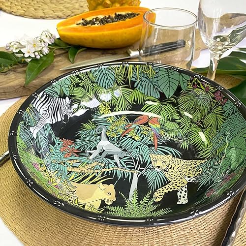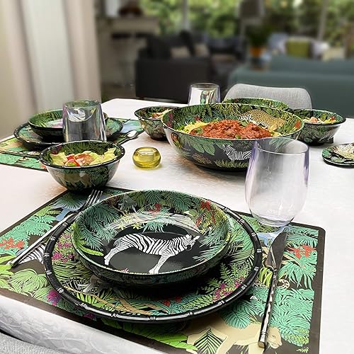 Les Jardins de la Comtesse - Assiette Creuse idéale en Assiette à Soupe ou Pâtes - Mélamine Pure - Jungle - Ø 20 cm - Noir/Vert - Service de Table - Collection de Vaisselle Quasi-Incassable MelARTmine