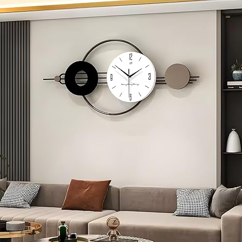 ClockUniverse Grande horloge murale - 80 cm x 37 cm - Noire et blanche - Horloge à quartz silencieuse - Montre moderne surdimensionnée pour salon, bureau, chambre à coucher - Design élégant, durable