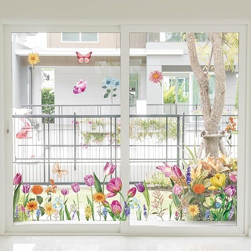 Autocollant Fenêtre Printemps, SILARLAIT 9 Feuilles Stickers Fenêtre Printemps, Électrostatique & Réutilisable & Amovible, Stickers Décoratifs Fenêtre, Décoration Pâques & Printemps