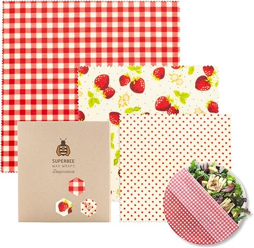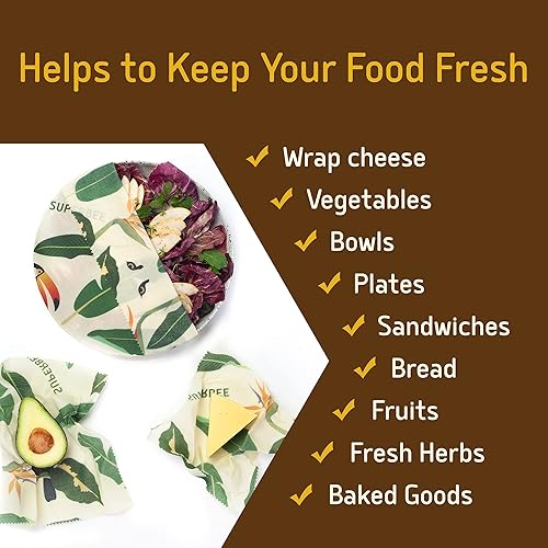 SuperBee Emballage de Cire d'abeille | Tropical Paradise | Ensemble de 3: Petit, Moyen et Grand | Emballage Alimentaire Réutilisable Écologique | Commerce Éthique