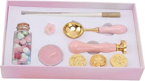 Rankomu Kit de tampons de cire remplaçables avec poignée en bois - Broche Sakura pour enveloppes et invitations - Rose