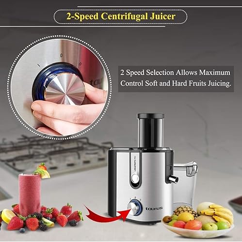 Taurus Liquafruits Pro - Centrifugeuse 800W, 2 vitesses, Extracteur jus et légumes avec bouche de 85mm, Réservoir amovible 2,5L, Pichet jus 1L, Système anti-goutte, LED, Inox