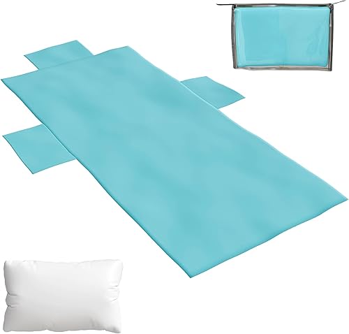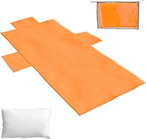 ICE TOYS Drap de plage 190 x 80 cm avec 2 poches 40 x 20 cm avec coussin, 40 x 30 cm, avec sac de rangement pratique et confortable pour la plage et le voyage (orange)
