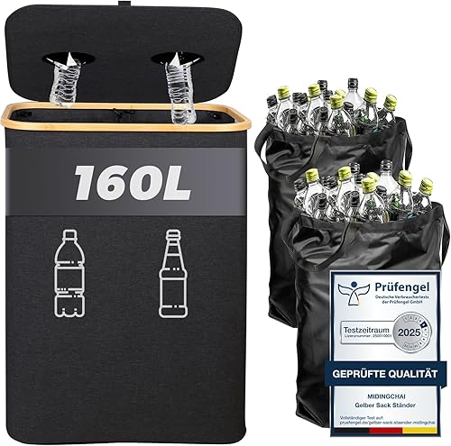 MIDINGCHAI 160L Poubelle Tri Selectif 2 Bacs, Poubelle de Tri avec Aacs Amovibles, Poubelle Cuisine Tri XXL, Bac de Tri Selectif - Idéale pour la cuisine