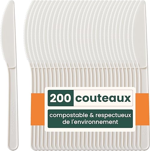 HAAGO - 100 Couteaux Couverts - Réutilisables, lavables au lave-vaisselle Couverts pour fêtes, mariages, événements, pour aliments chauds et froids - Blanc 18cm / 7'