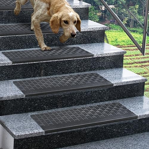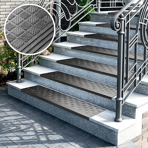 casa pura Marchettes d'Escalier en Caoutchouc pour Extérieur, Tapis d'escalier Antidérapant Résistant à la Chaleur, Pluie, Neige, Gel, Tapis pour l'escalier, épais. 8mm | Diamond - 25x65 cm - 5 Pièces