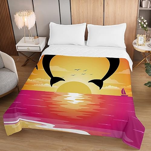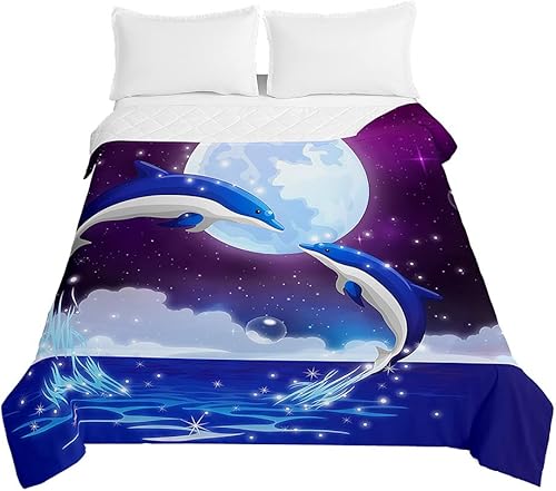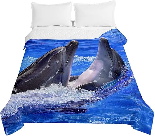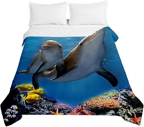 Hiseng Motif de Le Dauphin Couverture 1 Personne, 2025 Couverture de Lit 2 Personnes Convient à Toutes Les Saisons, Machine Lavable (Bleu A,230x260cm)