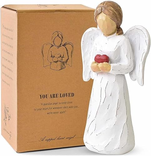 Zoyiancy Figurines d'ange gardien, cadeaux pour décoration d'intérieur, sculpture d'anges en résine tenant un cœur, Thanksgiving, Noël pour femme, maman