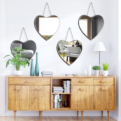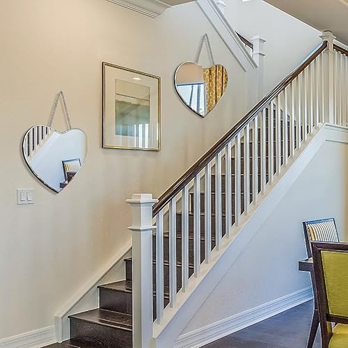 qmdecor Miroir en Forme de cœur avec chaîne de Fer pour décoration Murale 30,5 x 30,5 cm Miroir décoratif en Verre véritable sans Cadre Miroir Glam