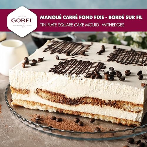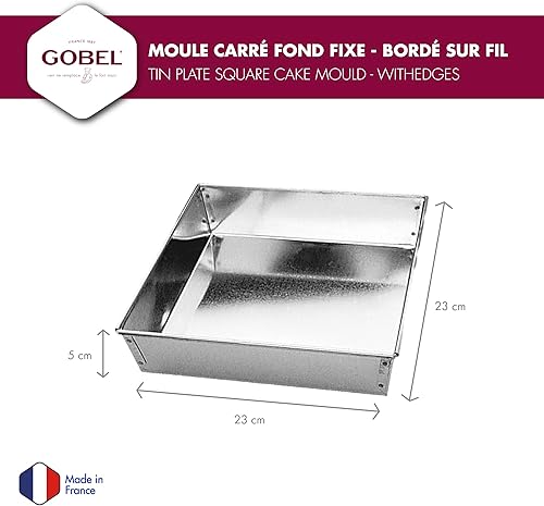 Gobel 124110 Moule à Manqué Carré Fond Fixe Fer Blanc bordé sur fil 22 cm de côté