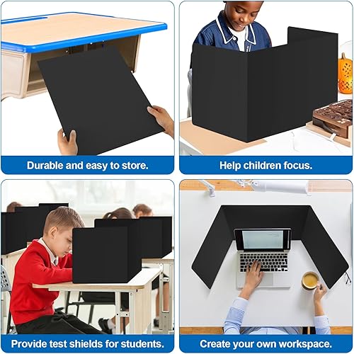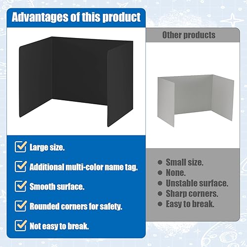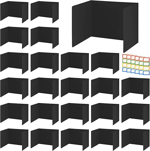 NQEUEPN 24pcs Séparateur de Bureau Ecole, Séparateurs de Carrel d'Étude avec 24 Étiquettes de Nom Tableau de Bureau de Classe Séparateurs de Bureau de Test pour Bureau d'Étudiant (Noir)
