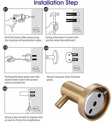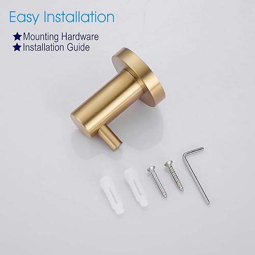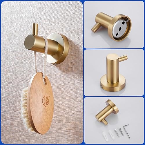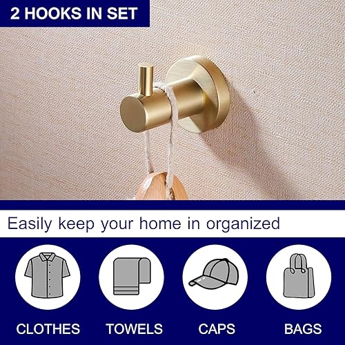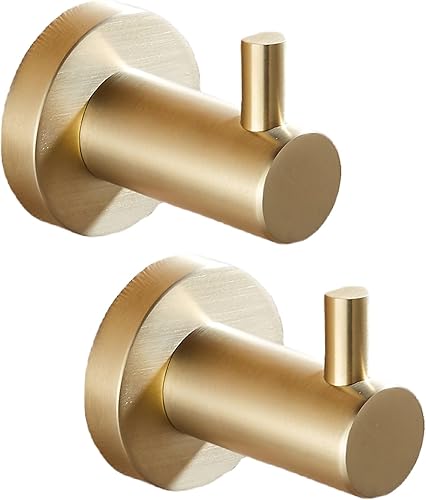 Gudetap Lot de 2 crochets muraux modernes en acier inoxydable SUS304 doré brossé GTA20802BG
