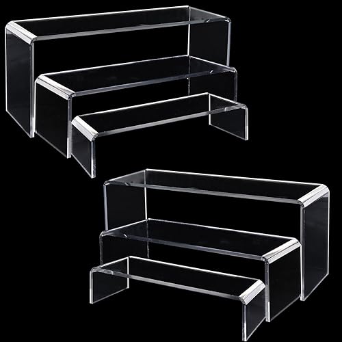 Nizirioo Lot de 6 présentoirs transparents en acrylique transparent pour objets de collection, figurines pops, cupcake, bijoux, vente au détail (3 tailles)