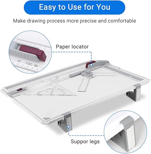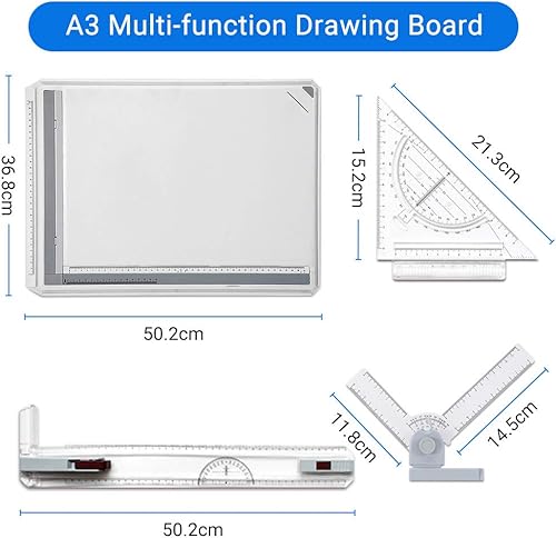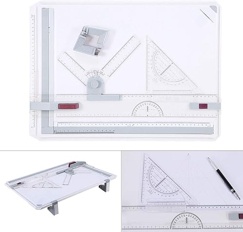Tableau de Dessin de Planche à Dessin A3 Table de Planche à Dessin de précision Professionnelle avec 2 règles parallèles et 2 Pinces d'angle, Planche à Dessin Ergonomique multifonctionnell