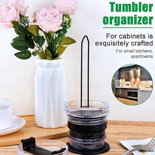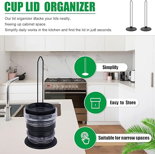PEUTIER 2 Pièces Organisateurs de Couvercles de Gobelet, Empilables peu Encombrants Support Rangement Vertical Jusqu'à 14 Couvercles pour Cuisine Armoire et Comptoirs (Noir)