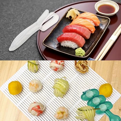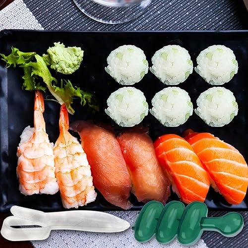 Viojrlly 4 Pièces Kit Sushi Maker Roller Rice Ball Moule à Antiadhésive Boule de Riz Moule Onigiri Bento DIY Sushi Making Machine Appareil à Sushi pour Débutant Réutilisable Accessoires Cuisine