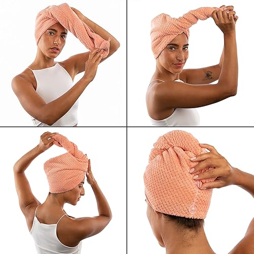 UB-STORE Serviette de Luxe pour Cheveux en Microfibre Rose - Turban de tête Ultra Absorbant, Doux et à séchage Rapide - pour Toutes Les Femmes et Tous Les Types de Cheveux