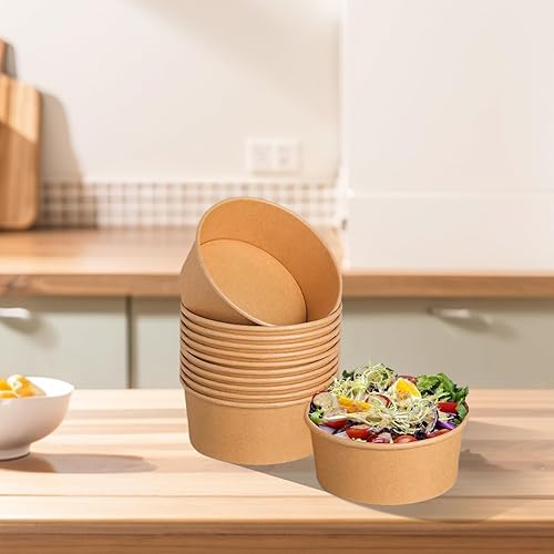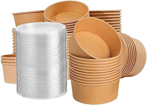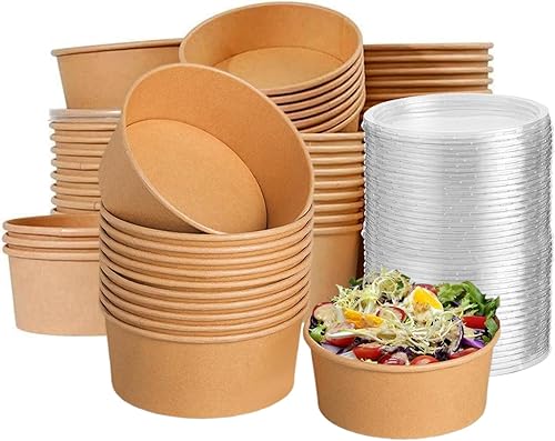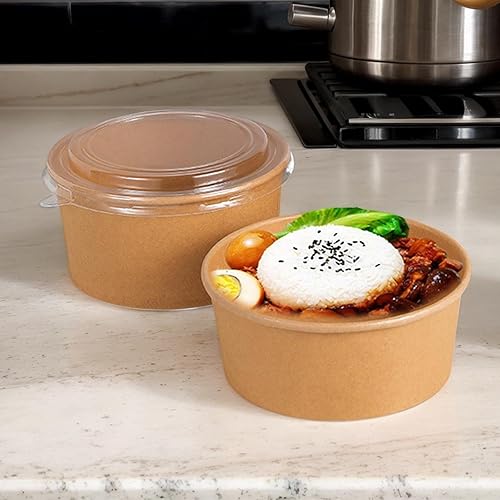 50 pcs bols jetables, 350 ml de contenants alimentaires jetables avec couvercles, récipient de préparation repas jetable kraft empilable pour les aliments chauds et froids, contenants préparati