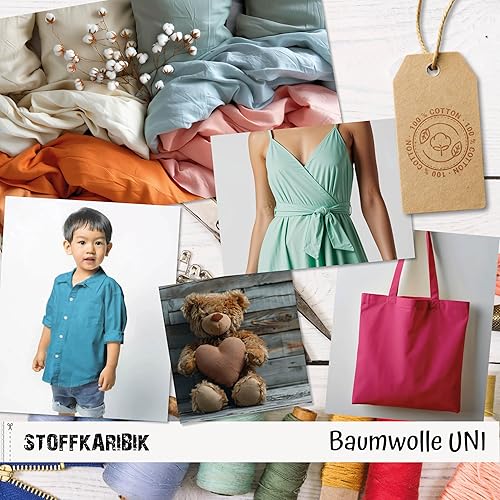 VmG-Store Tissu de coton uni 100 % coton Oeko-Tex au mètre à partir de 50 cm plus de 70 couleurs au choix (04 blanc optique, 50 x 148 cm)