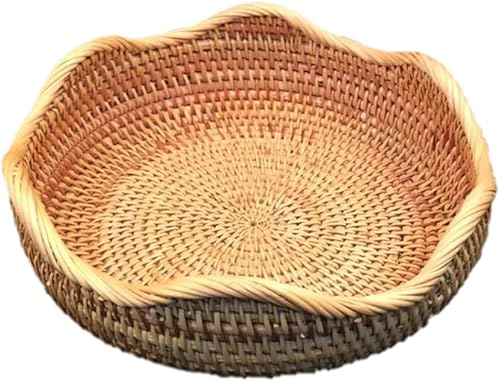 LICHENGTAI Panier de Rangement Rond en Rotin, Panier De Rangement Tressé Corbeille à Pain Panier à Pain Osier Rotin, Paniers De Nourriture De Service pour Fruits Pain décoration de Cuisine