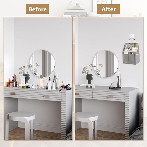 2 Pièces Sac de Rangement Mural à Suspendre,Organiseur de Porte avec 2 Crochets, Organisateur Mural Suspendu avec Poche, Rangement à Suspendre pour Salle de Bain, Cuisine(Gris)