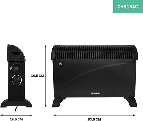 VONROC Convecteur Électrique 2000W Noir - Thermostat Réglable - Chauffe Jusqu'à 24m2-3 Positions de Chauffage, Protection Contre La Surchauffe - Convecteur 2000w Silencieux et Puissant