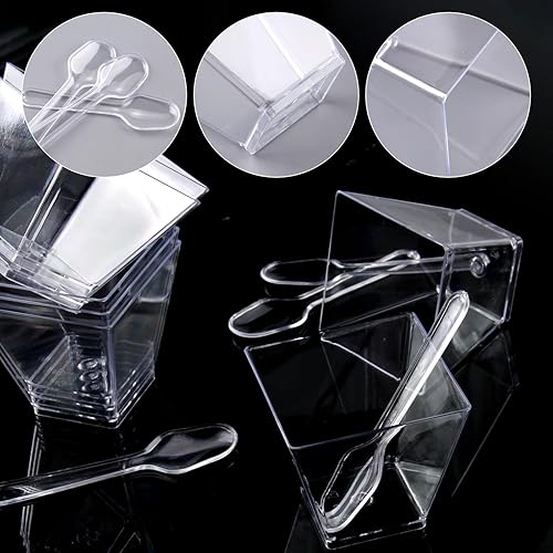 Xmart 60 pièces 60 ml Verrine Plastique Aperitif avec 60 Cuillères à Dessert Verrines Plastique Réutilisables Mini Gobelets à Dessert Carrés Trasparente pour Mousse Pudding Crème Glacée