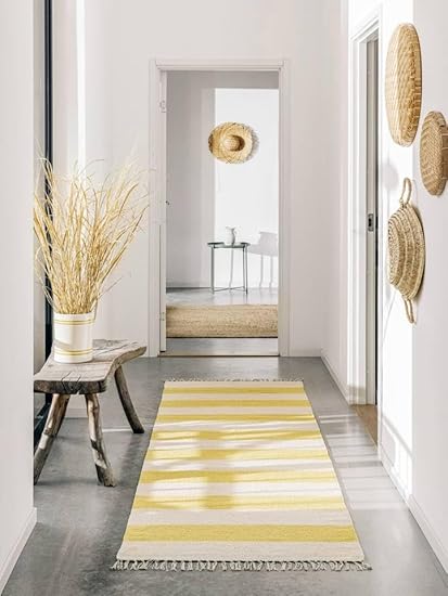 RugVista Cotton Stripe Tapis Kilim Moderne, 80x250 cm, Coureur, Poil Court, Nettoyage à Sec, Salon, Salle de séjour, Chambre, Salle à Manger, Couloir, Fabriqué à la Main, Clair Bleu