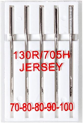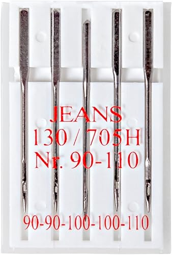Faden & Nadel 20 Aiguilles de Machine à Coudre : Jeans, Jersey, Stretch et Cuir ; 5 pièces/variétés de différentes Tailles ; Système : Piston Plat