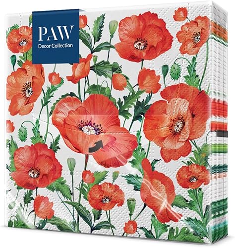PAW - Serviette Papier 3 Plis (33 x 33 cm) I Lot de 20 I Serviette de Table Papier Idéal pour les Anniversaires, les Fêtes Patronales, les Garden Parties, les Événements Familiaux (Flanders Poppy)