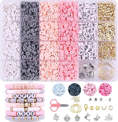 BELLIFFY Boîte De Perles Plates En Pâte Polymère Fournitures Pour Fabrication De Bijoux Kit De Bricolage Pour Créations Diy