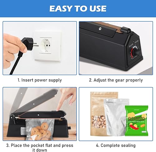 Scelleuse Thermique 200 mm, Thermoscelleuse Machine, Impulse Heat Sealer, Machine à Sceller à Chaud, Soudeuse Thermique, Thermoscelleuse, pour Sacs en Plastique, PE, PP, Mylar
