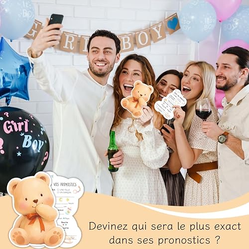 20 Carte Pronostic Baby Shower Francais, Gender Reveal Ourson Mignon, Baby Shower Jeux pour Fête Prénatale Party Révélation du Genre Fille ou Garço Gender Reveal Decoration Souvenir