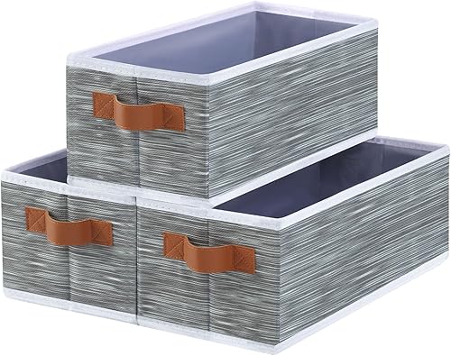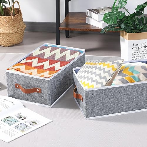 OUTBROS Set de 3 Boîtes de Rangement, 38 x 15.5 x 13 cm avec Poignée Panier en Tissu, Caisse Pliable Pour Armoire, Vêtements, Livres, Cosmétiques, Blanc