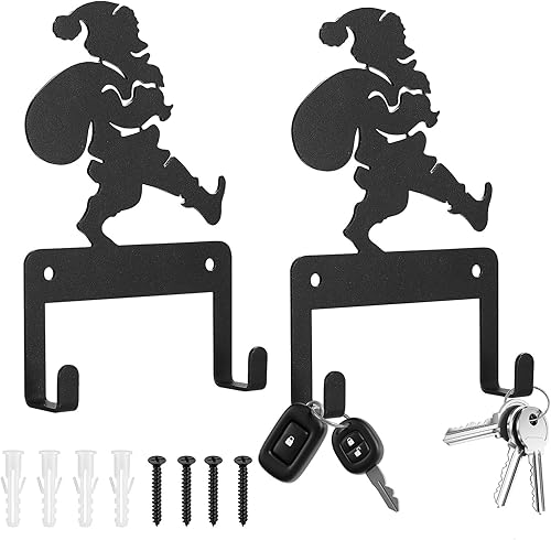 2 Pcs Porte Clef Mural, Porte Clé Mural avec 2 Crochets, Accroche Clef Murale pour Rangement des Clés, Porte-clés Muraux Noir pour Couloir Entrée Cuisine, Auto-Adhésifs ou à Percer (Chien)