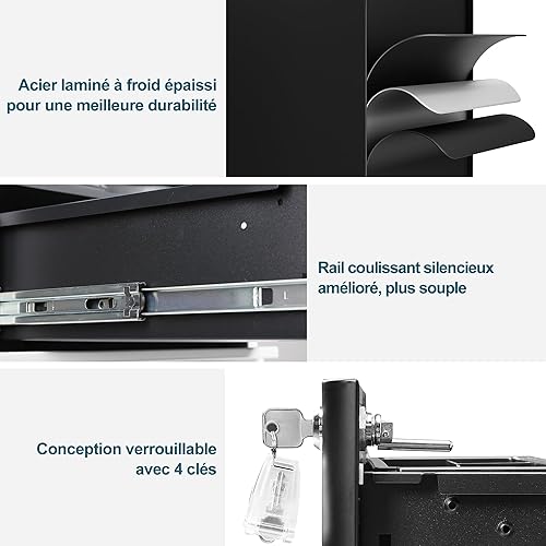 LVSTEEL Caisson Bureau, avec roulettes et Serrure, Caisson de Rangement Mobile, Meubles de Bureau, avec 3 Tiroirs pour Dossiers et Dossiers Suspendus, Bureau à Domicile, Entièrement Assemblé