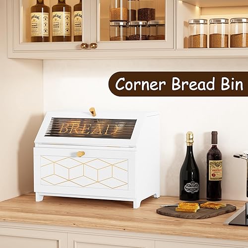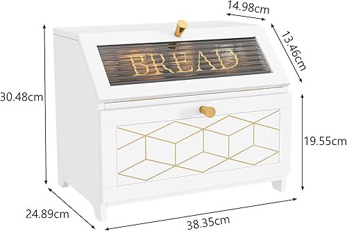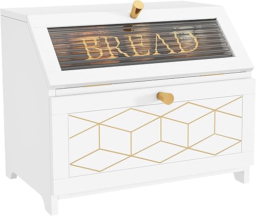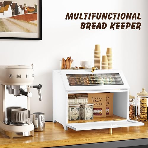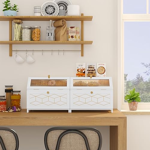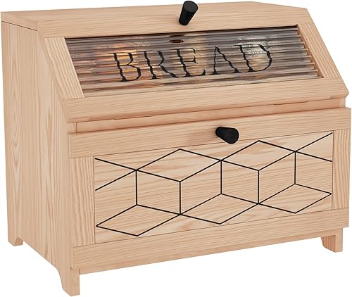 HOLTICO Double Boite a Pain Bois, Naturel Boite à Pain Avec Fenêtre Transparente, Grande Huche à Pain Pour La Conservation Des Aliments Sur Le Comptoir De La Cuisine