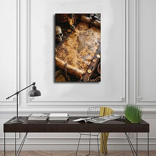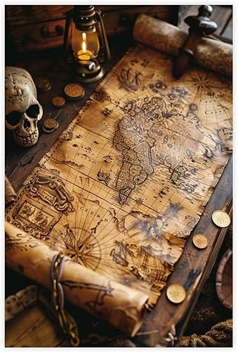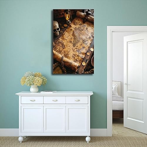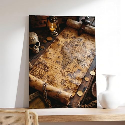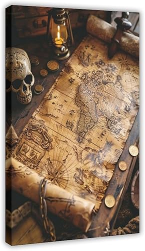 Impression sur toile représentant une carte au trésor des pirates 30 x 45 cm