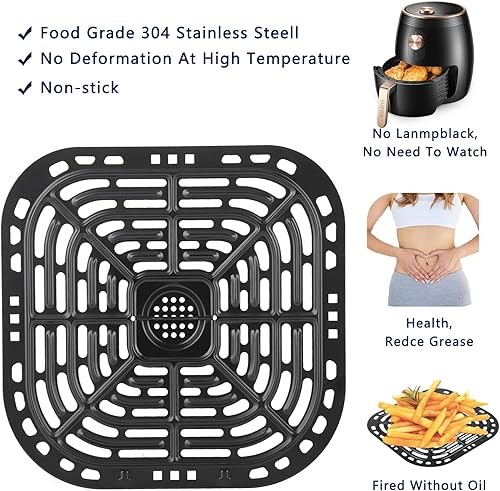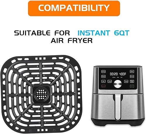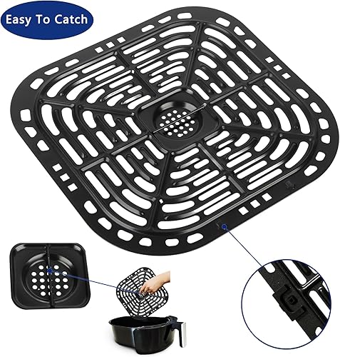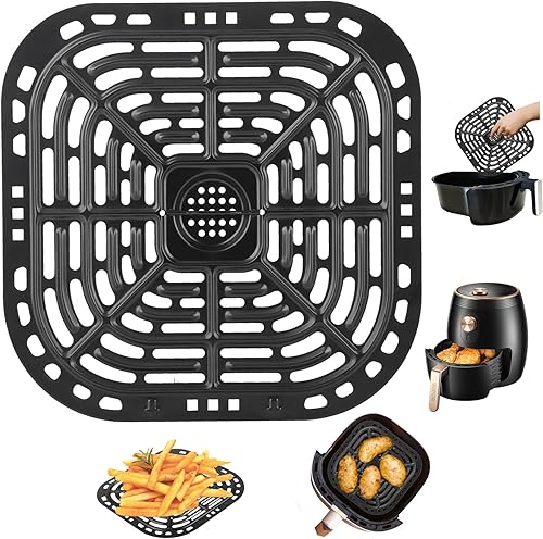 Kelepu Grille Protection Air Fryer Poêle à Gril pour friteuse à air carrée 24.5x23.5cm Poêle à Gril de Remplacement pour friteuse à air avec Plaque à légumes de Remplacement pour friteuse à air