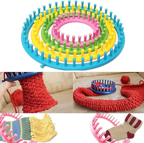 Vidillo Kit de Métiers à Tricoter Ronds en Plastique pour Chapeaux, Écharpes, Bonnets, Sacs, Chaussettes et Plus - Aiguilles et Crochets Inclus