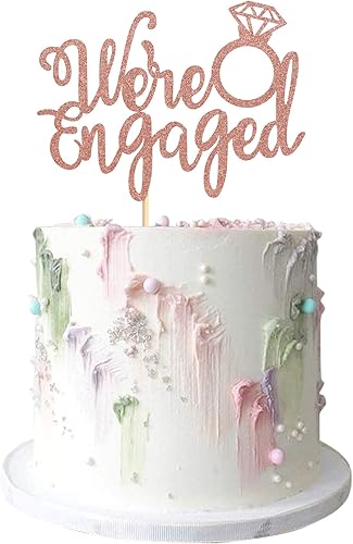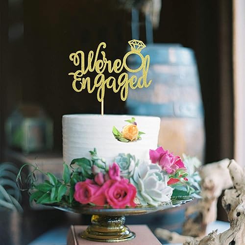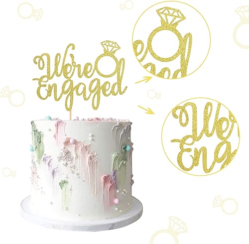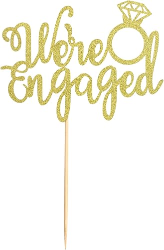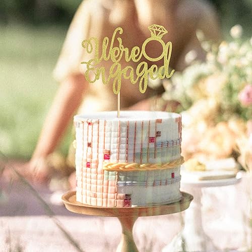 1 décoration de gâteau de fiançailles dorée à paillettes « We're Engaged » pour enterrement de vie de jeune fille, mariage, fiançailles, fête à thème