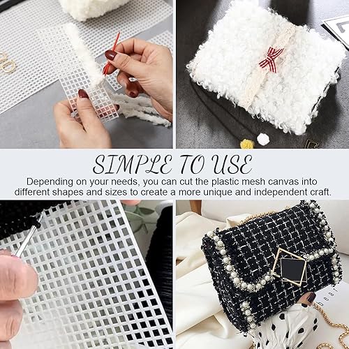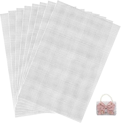 YZROHYI 8 Pièces Feuilles de Toile en Maille Plastique 30 X 20 cm,Canevas Plastique pour Sac à Main,Broderie en Maille Blanc,Plastic Mesh Canvas,Canevas Broderie Maille Trous pour Bricolage Artisanat