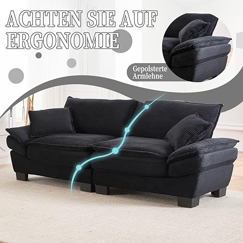KOMHTOM Canapé Moderne 2 Places en Velours avec 2 Appuis-Tête et Coussins, Canapé Convertible avec Cadre en Bois et Pieds Noirs, Fauteuil de Relaxation pour Le Salon (Gris Foncé)