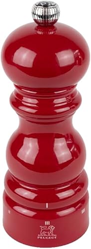 PEUGEOT - Moulin à Poivre Paris u'Select 15 cm - 6 Réglages de Moutures Prédéfinies - En Bois Labellisé PEFC - Fabrication Française - Coloris Laqué Rouge Passion