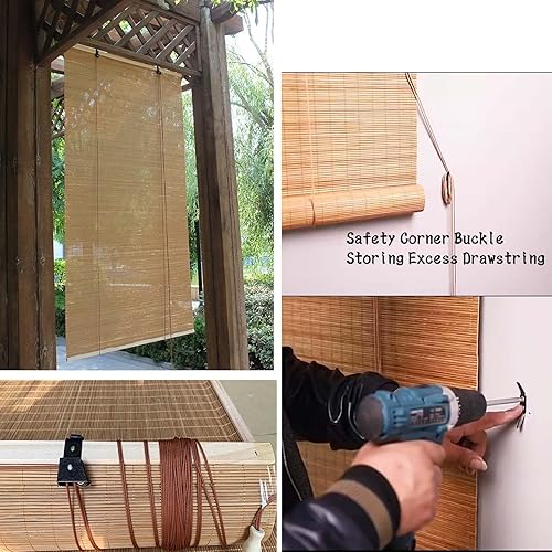 Store en Bambou Store Bateau en Bambou Rétro Romain Largeur 45-180cm Store Rouleau en Bambou Respirant/écran Solaire Stores Romains D'intimité pour L'extérieur Jardin Patio Balcon Personnalisable