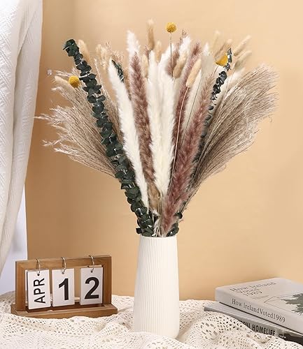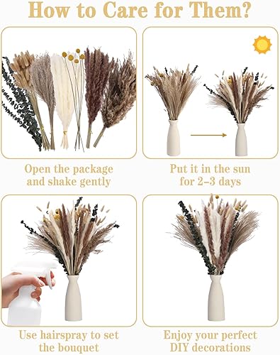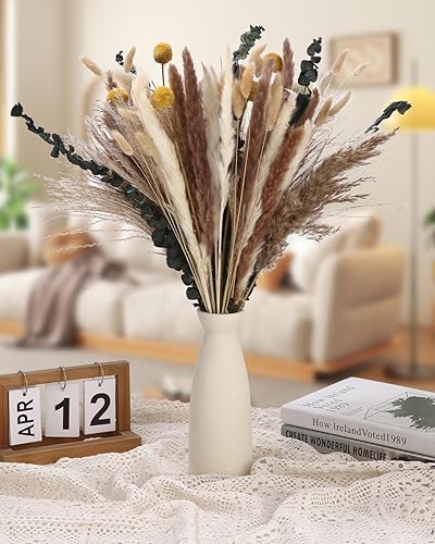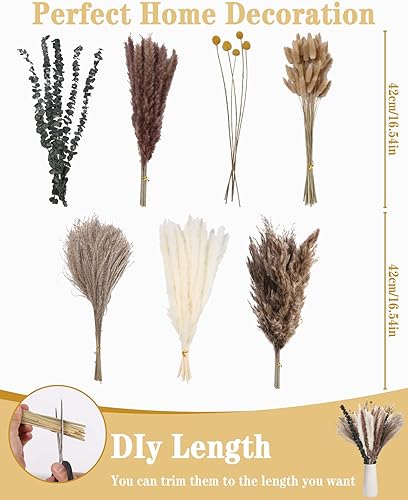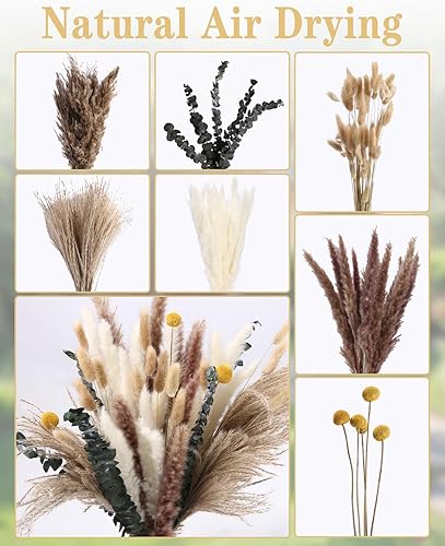 Xaosin Pampas Sechees Decoration 115 Pièces Bouquet Fleurs Séchées Deco Maison Fleurs Sechees Naturelles Herbe de la Pampa Decoration Chambre pour Boho Mariage Anniversaire Fête Rustique