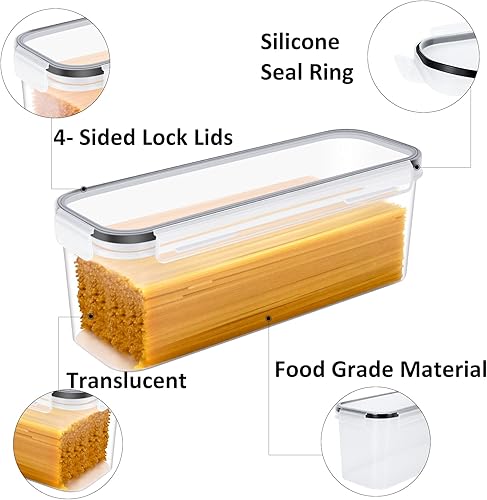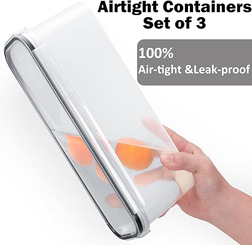 HRUISE Lot de 3 boîtes de rangement hermétiques rectangulaires de 2.3 l avec couvercles, en plastique sans BPA, pour la cuisine, le garde-manger, pour les pâtes, les céréales, les flocons d'avoine