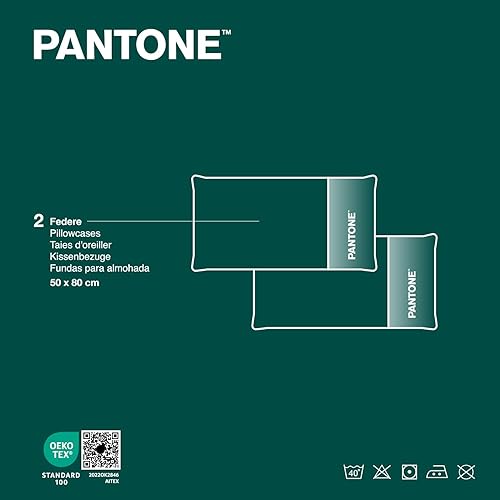 Pantone - Taies d'oreiller d'oreiller de lit 50 x 80 cm Coton 100% certifié OekoTex, Housse de Coussin de lit, 2 pièces, Frais Respirants, taie d'oreiller avec Rabat de 20 cm, Linge de lit Doux et